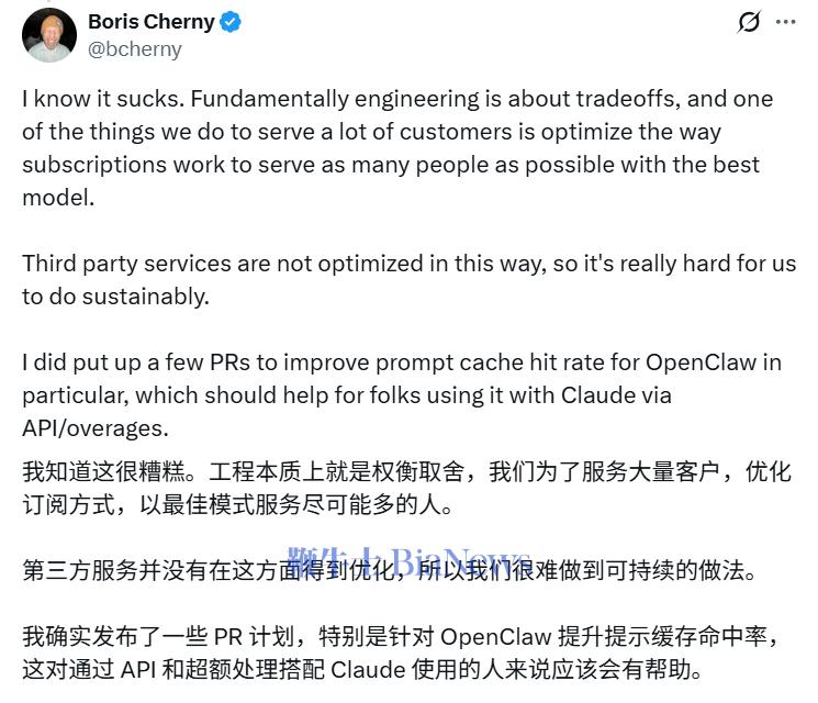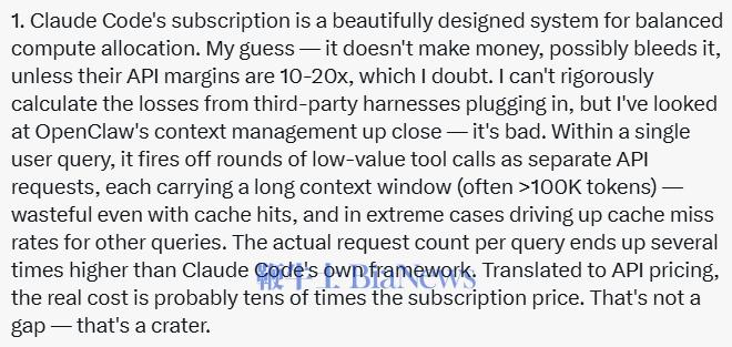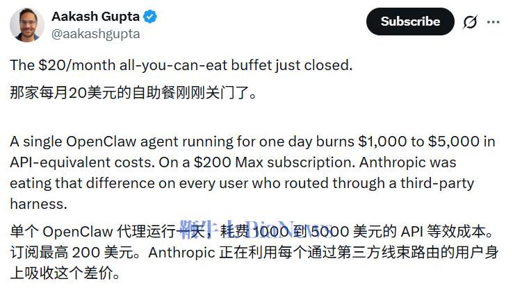 :"我们的订阅体系不是为这些第三方工具的使用模式设计的。算力是我们需要审慎管理的资源。"