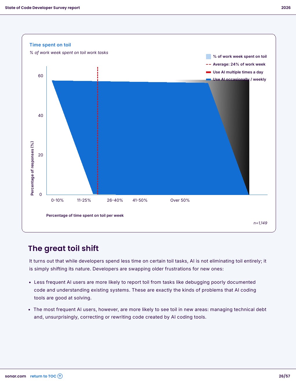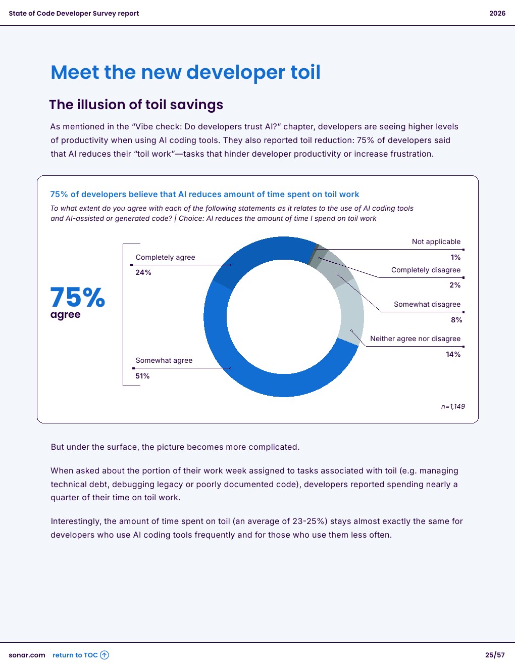 综合来看,AI并未消除开发中的重复劳动,而是将其从“编码”转移至“验证”,开发者约24%的时间仍用于低效工作