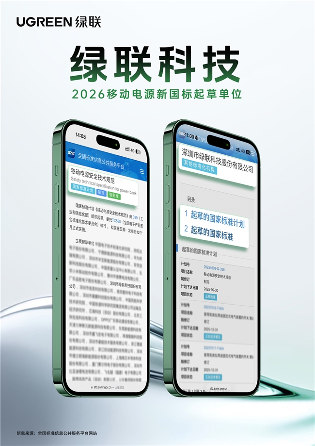 近期,央视网重点报道的《移动电源安全技术规范》强制性国家标准(GB 47372-2026)落地推进,正是移动电源赛道迎来产业重构的标志性节点。作为新国标的核心参编单位,中国科技品牌绿联凭借前瞻性的战略布局与全链条的体系能力,在本轮行业升级中抢占了发展先机,也为消费电子细分赛道的标准化发展提供了企业范本。
