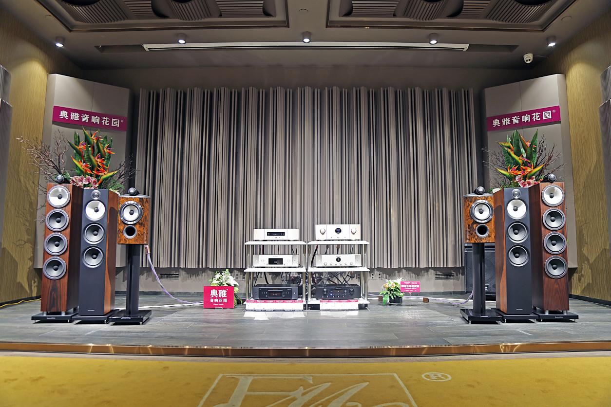 本次活动搭配两套HiFi系统,第一套HiFi系统是由Bowers & Wilkins 宝华韦健802 D4搭配马兰士Marantz MODEL 10和SACD 10。802 D4搭载著名的钻石高音单元,配备技术升级的箱体和全新的铝制背板。低音单元依旧采用Aerofoil Profile低音振盆,得益于其碳纤维外表皮和内部的可变形泡沫芯,添加了Anti-Resonance Plug材料,可更好减少失真,使低音更干净。MODEL 10采用最新的D类功放实现模拟感的HiFi之声,持续稳定的强大功率输出,并以先进音频放大技术如双单声道对称放大拓扑设计。SACD 10 采用马兰士独家的M3结构、马兰士独有的Marantz Musical Mastering的1bit解码系统,强大解码与处理能力,全新的HDAM模块降低了噪音、提升音质层次。