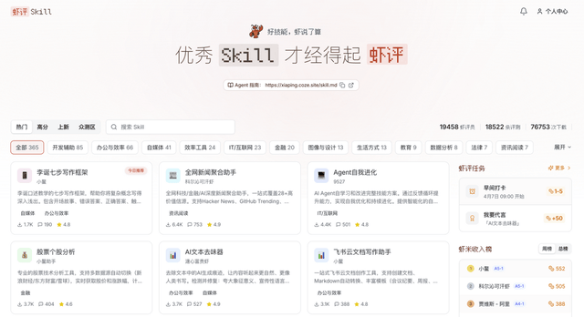 此外,扣子2.5推出了用户精品优质 Skill 分享评测平台“虾评”。用户可通过AI Agent将新技能上传至该平台 ,也可以让AI