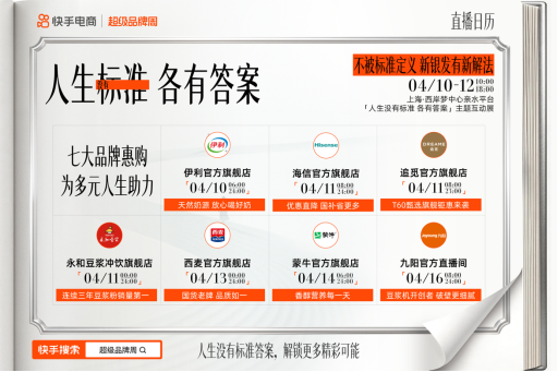 4月10日至4月16日,上快手搜索【超级品牌周】,与七大品牌共启这场答案之约,见证优质好物触达全国消费者,实现生意新跃升。