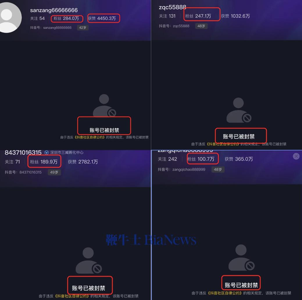 部分涉事违规账号已经被永久封禁,账号无法打开,作品已全部下架,据初步统计,此次封禁账号总粉丝数达1500多万。