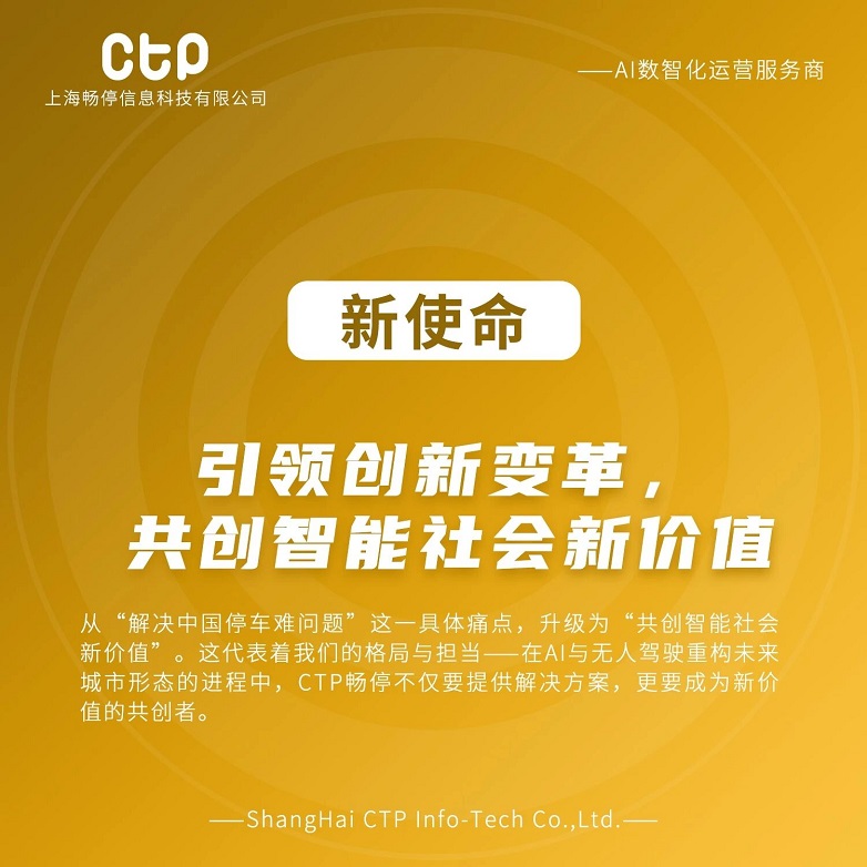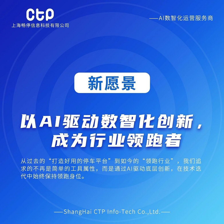 未来已来,人工智能正在重新定义一切。CTP畅停已整装待发,将以全新的身份——“AI数智化运营服务商”,与所有合作伙伴一道,拥抱这场伟大的变革,共创智能社会新篇章!
