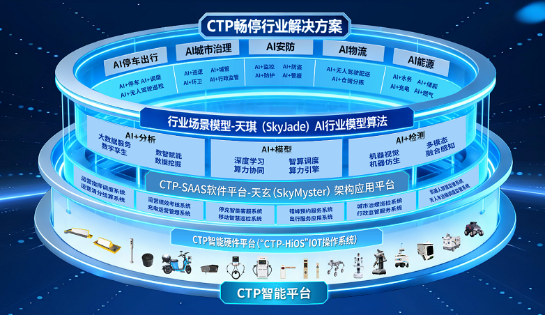 CTP通过AI赋能,聚焦AI停车出行、AI城市治理、AI物流、AI能源、AI安防等核心领域,基于自主研发的“天琪(Skyjade)AI行业模型算法”、“天玄(Skymyster)底层架构平台”,以及搭载“CTP-HiOS”IOT操作系统的机器人、无人驾驶、无人机、停车设备、计量设备、充电桩等物联网智能硬件,为政府、企业及公众提供全场景、全周期“端-边-云”协同的AI数智化解决方案。公司以“引领创新变革,共创智能社会新价值”为使命,推动传统行业向数字化、智能化、绿色化转型。