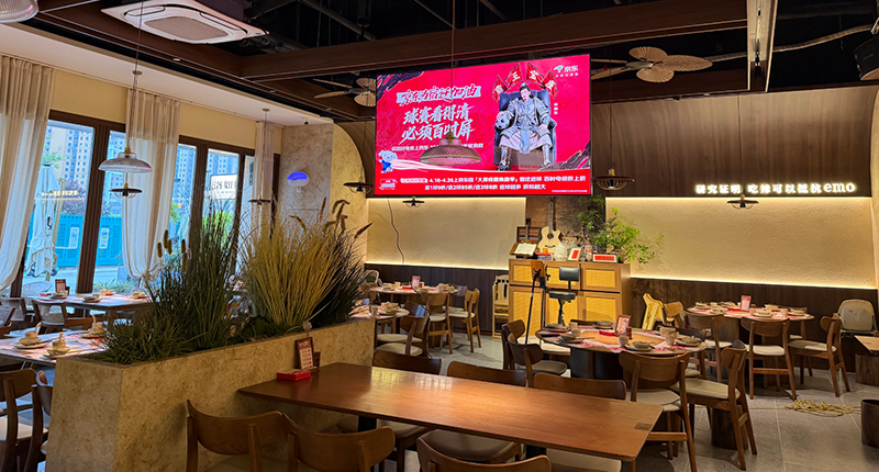 宿迁人气餐厅吊装百吋电视 打造球迷“第二现场”
