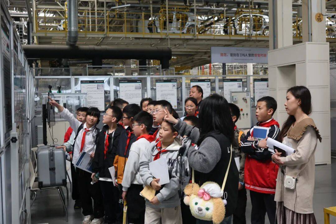 在领克汽车工厂的冲压车间,一块块钢板在机械臂的精准操作下,经过多道工序被塑造成汽车外壳的雏形。同学们屏息凝神,观察着钢板如何在高压下完成变形,又如何在自动化传输带上进入下一环节。随后,他们来到焊装车间,目睹了数百个焊点在瞬间完成拼接,将分散的部件组合成完整的车身骨架。讲解员老师通过生动的比喻解释道:“每一辆汽车的诞生,都像是在完成一件精密的艺术品,容不得半毫米的误差。”