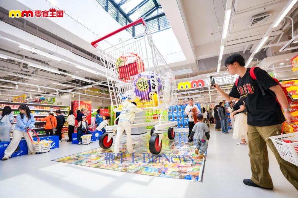 从“零食长廊”进入,在7.6万颗棒棒糖拼制的封面墙前完成第一站打卡;转入“泡面之城”,在3500多种泡面中寻找记忆与新鲜感;走进“全球零食站”,一次性解锁近20个国家的可乐与多口味乐事薯片;在面包墙、巨型购物车与60+品牌IP互动区停留拍照;再到“零食很大”与“零食很小”之间感受尺度反差,从1米高的巨型零食到拇指大小的迷你零食挂件,形成强烈的视觉与体验对比;最后在“雀神争霸赛”等互动区域停下脚步,让“逛店”变成一场参与感更强的游戏过程,不少市民表示“每走一步都有惊喜,逛店就像一场零食寻宝”。