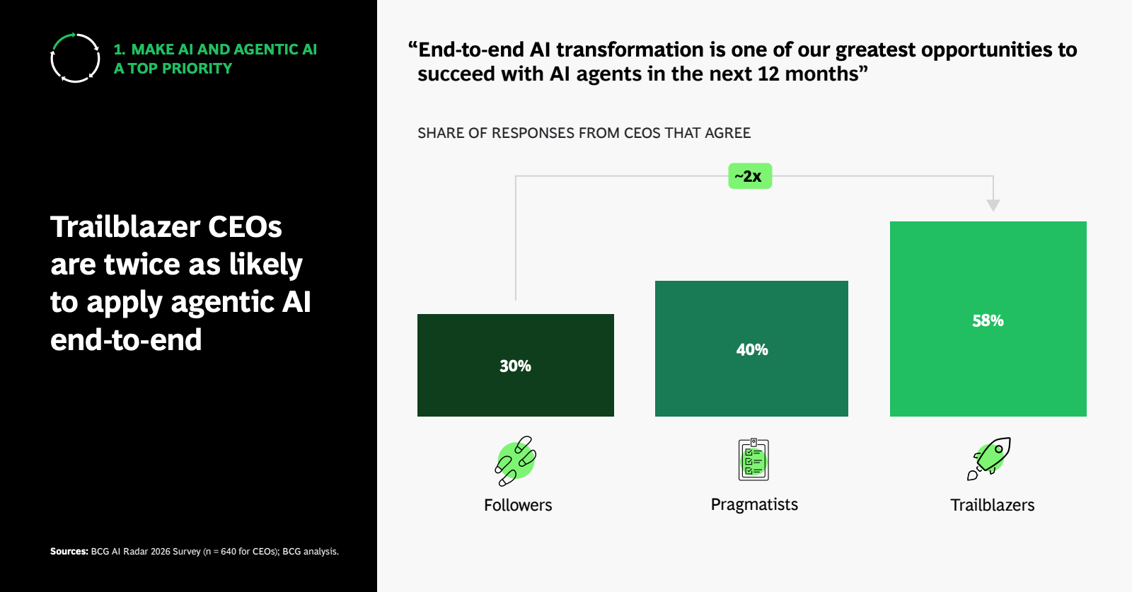 决策权结构正在发生根本性变化,72%的CEO已成为AI决策的主要负责人,较上一年实现翻倍增长