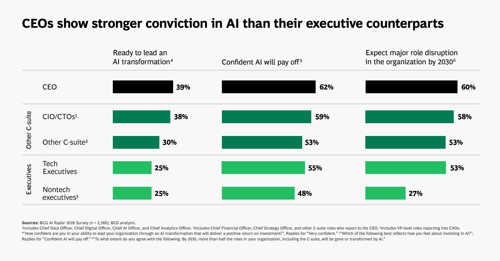 82%的CEO对AI回报持更高信心,50%认为自身职位稳定性直接取决于AI战略成败