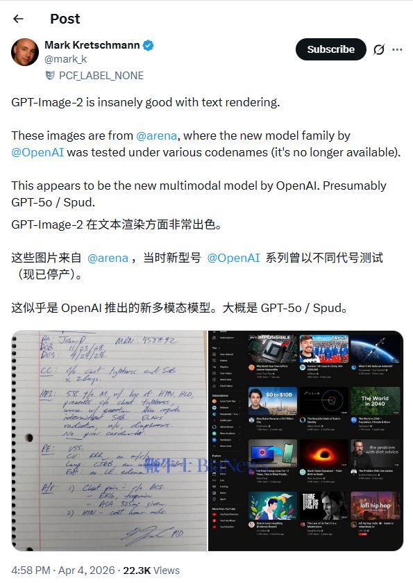 编辑:桃子PS时代真的终结了!今天,OpenAI神秘模型GPT-Image-2意外泄露,不仅能像素级还原「奥特曼合照」,更攻克了中文书法、复杂UI设计。谁也没想到,火遍全网的奥特曼合照,竟是AI生成的! 就在今天,大V曝光了一组令人头皮发麻的图片,全部出自OpenAI新一代多模态模型GPT-Image-2之手!GPT-Image-2,据传内部代号GPT-5o/Spud,在竞技场中悄然上线。迭代之后