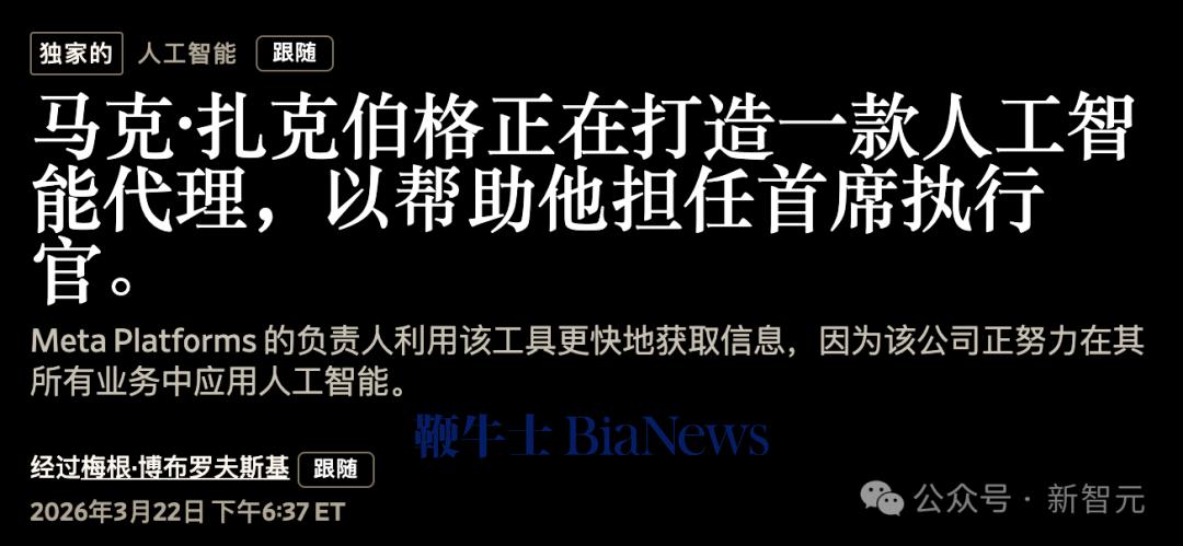 每天都有数不清新 Agent 工具横空出世。每一个都说自己能改变你的工作方式。关注还是不关注,上手还是观望——光是做这个判断,本身就已经很累了。AI 浪潮制造了海量信息,也顺手制造了大规模的 FOMO(Fear of Missing Out,就是那种「别人都在用、就我还没上车」的焦虑)。这种焦虑,连扎克伯格都没躲过去。扎克伯格想绕过自己的官僚层《华尔街日报》近日报道,扎克伯格正在 Meta 内部悄