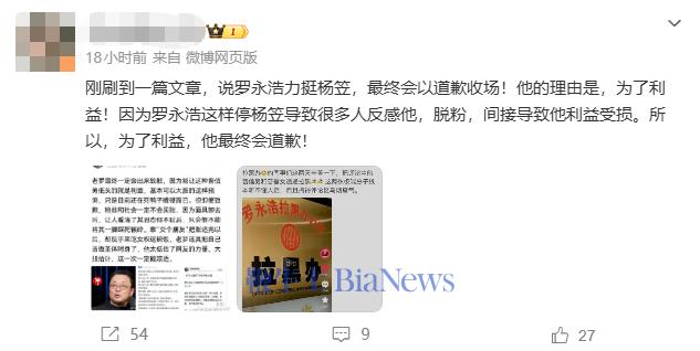 近日,罗永浩播客节目邀请了脱口秀演员杨笠,引发关注。有网友在社交平台分享自己看到的一篇文章,并提到文中所说的罗永浩力挺杨笠,最终会为利益选择道歉,理由是力挺行为导致大量用户反感、脱粉,从而造成利益受损。随后罗永浩转发该文章,针对这个说法回应称:“不会,我不介意退休,退休后可以开足马力全职骂傻x,这样会更长寿,这些心理阴暗的叫花子,总觉得别人做什么事情都是为了钱。”据了解,罗永浩与杨笠播客节目播出后