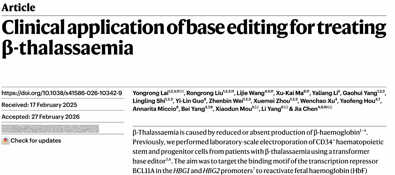 β-地中海贫血是由于β-珠蛋白基因缺陷导致β-珠蛋白肽链合成障碍所致的遗传性溶血性疾病,是一种常见的单基因遗传病,每年在全球范围内影响超过40,000新生儿童。输血依赖型β-地中海贫血(transfusion-dependent β-thalassemia,TDT)患者需要终身输血才能维持生命。 目前,TDT的传统治疗手段为定期输血并配合祛铁治疗,可能会面临血源紧张、血制品供应不稳定等血源问题而中