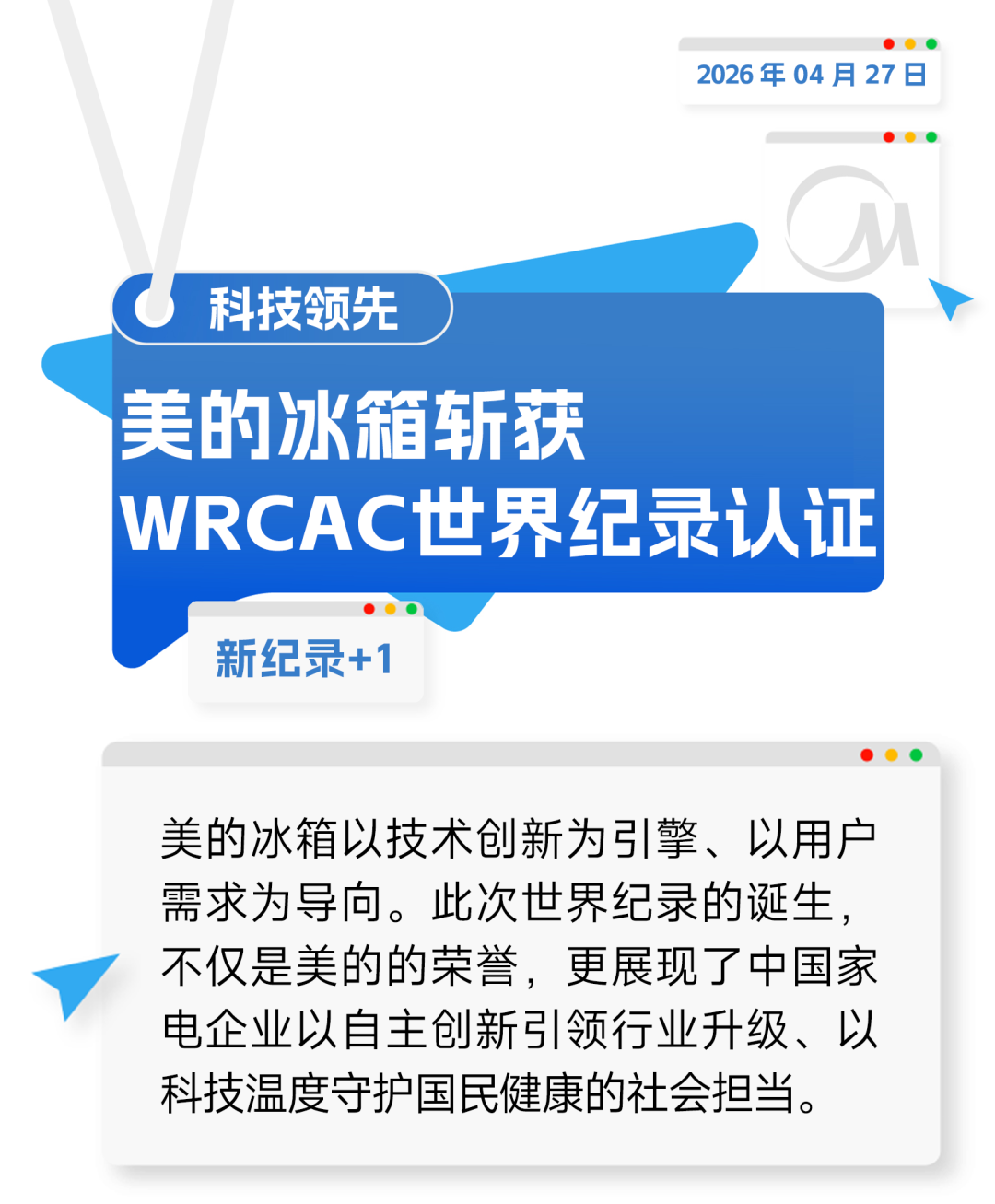 4月27日,在厦门WRCAC世界纪录认证官方展厅,美的冰箱凭借自主研发的全净PST+智能净化技术,通过严格技术审核,成功荣获“有效净化冰箱空气有害物质种类最多的净化科技”世界纪录认证。这一成果,标志着我国在家电净化技术领域实现重大突破。WRCAC总部位于英国伦敦,是全球公认的世界纪录权威认证机构。WRCAC认证以严谨、公正著称,其认证过程依托全球权威数据支持,并与多家国际第三方权威检测机构合作,确