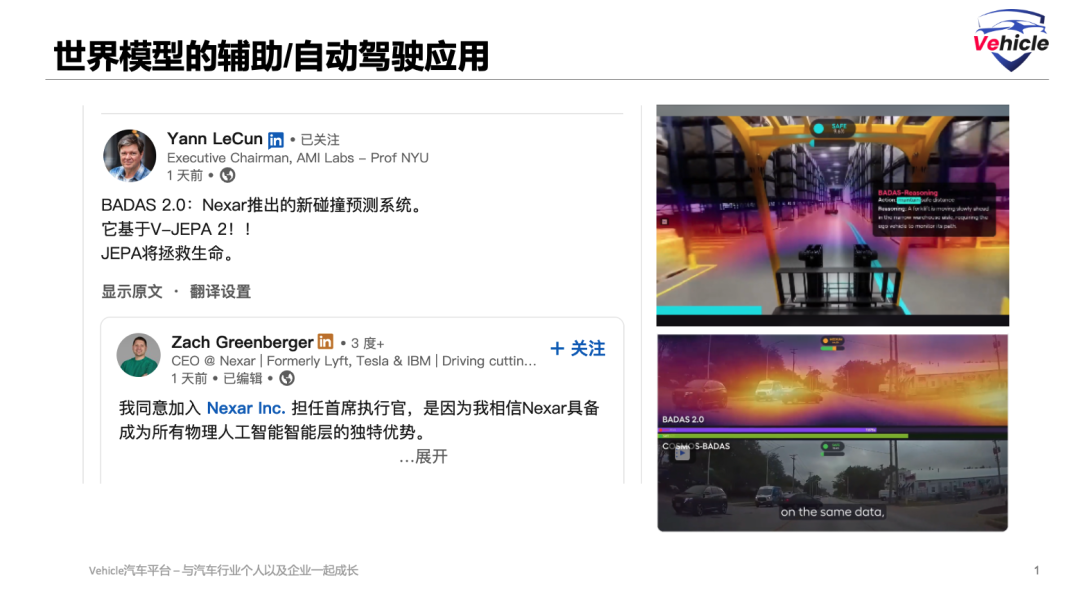 最近AI 大神Yann leCun在其个人linkedin 和x上都转发一个叫基于其世界模型V-JEPA 2理论的新产品BADAS-2.0,并表示JEPA世界模型将拯救生命开始在Physical AI 应用。 所以本文就解码分析: BADAS-2.0是什么产品 他基于什么物理硬件 他能到达什么样的性能 他是怎么利用V-JEPA2 的技术实现 他目前的发展和挑战约束是什么 未来世界模型怎么帮助自动驾