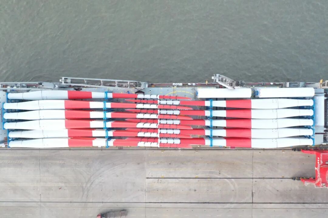 4月19日特运“宏福”轮于太仓港顺利完成12套风电设备装载任务为埃及苏伊士1.1GW风电项目画下完美句点埃及苏伊士1.1GW风电项目是特运与华东院合作以来单体货量最大的风电项目也是非洲可再生能源开发的标志性项目项目选用“福”字号重吊船作为运输主力虽是同一系列船型但不同船驾驶台高度最大偏差达四米在看似“同船同货”的批量运输中项目团队坚持“一船一策”制定方案:从风叶固定支点的应力分布到驾驶台盲区边界划