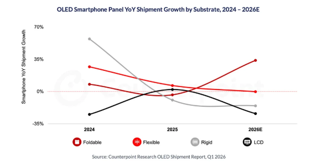 4月16日消息,Counterpoint Research昨日(15日)发布报告,预测2026年OLED笔记本市场将迎来33%的同比增长,核心驱动力来自苹果MacBook Pro产品线向OLED屏幕的转型。MacBook Pro的屏幕升级成为本次报告的亮点。报告指出,虽然内存价格上涨推高了设备成本,导致智能手机需求疲软,但笔记本市场却逆势增长。这主要得益于苹果MacBook系列屏幕选择采用OLED