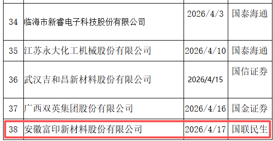 4月17日,安徽富印新材料股份有限公司(简称“富印新材”)IPO申请在北京证券交易所(简称“北交所”)上会获通过。富印新材本次拟向不特定合格投资者公开发行股票不超过19,000,000股(不含超额配售选择权);不超过21,850,000股(全额行使超额配售选择权的情况)。公司本次募集资金投资额40,384.99万元,主要用于精密功能材料生产建设项目(一期)、研发中心建设项目、信息化建设项目、补充流