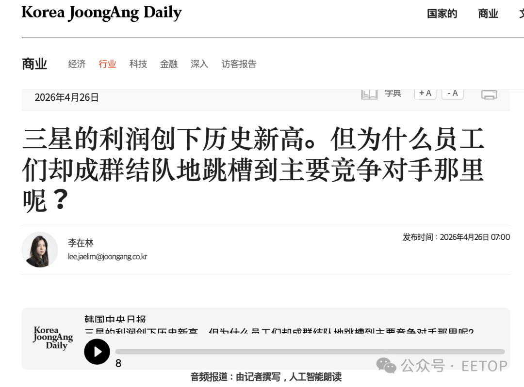 炸了!三星员工成群结队跳槽海力士,有人薪资翻9倍!人均奖金600万!