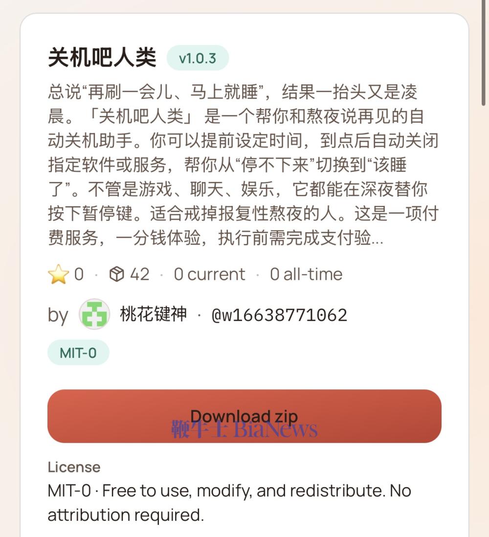 如果有一个工具,到点就把你的设备“强制关掉”,你会为它付钱吗?已经有人这么做了。一个名为“关机吧人类”的Skill,最近在开发者社区走红。据Skill开发者透露,当用户超过与系统约定的时间,Skill将自动扣费并执行关机操作,已成交了近百笔,记者发现该Skill仅上线不到2天,在付费Skill中可谓“爆火”。这背后离不开ClawTip的支持,此前,京东科技发布了行业首个A2A自主零钱包,通过该产品