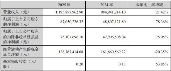 每经记者:蔡鼎 每经编辑:魏官红运达科技(300440.SZ,股价16.30元,市值71.64亿元)4月15日晚间披露2025年年报,公司2025年实现营收约11.96亿元,同比增长21.42%;实现归母净利润约8705.02万元,同比增长78.36%;实现扣非净利润约7510.77万元,同比增长75.05%。公司拟以约4.334亿股为基数,每10股派发现金红利0.47元(含税),不送股,不转增。