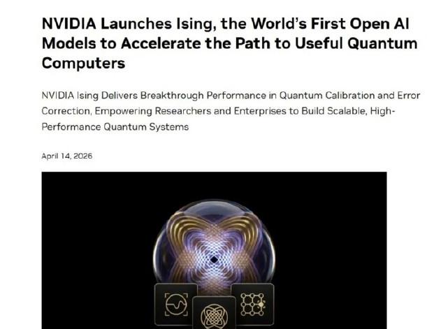 量子计算领域迎来历史性突破! 当地时间4月14日,英伟达在GTC 2026大会上正式宣布推出全球首个开源量子AI模型系列——NVIDIA Ising(伊辛),一举攻破了困扰量子计算多年的两大核心难题,直接推动这项“未来技术”向实用化迈出关键一步。 可能很多人不懂,量子计算之所以一直难以走出实验室,核心就卡在两个“老大难”上:量子处理器校准和量子纠错。而这次英伟达的Ising模型,恰恰精准解决了这两