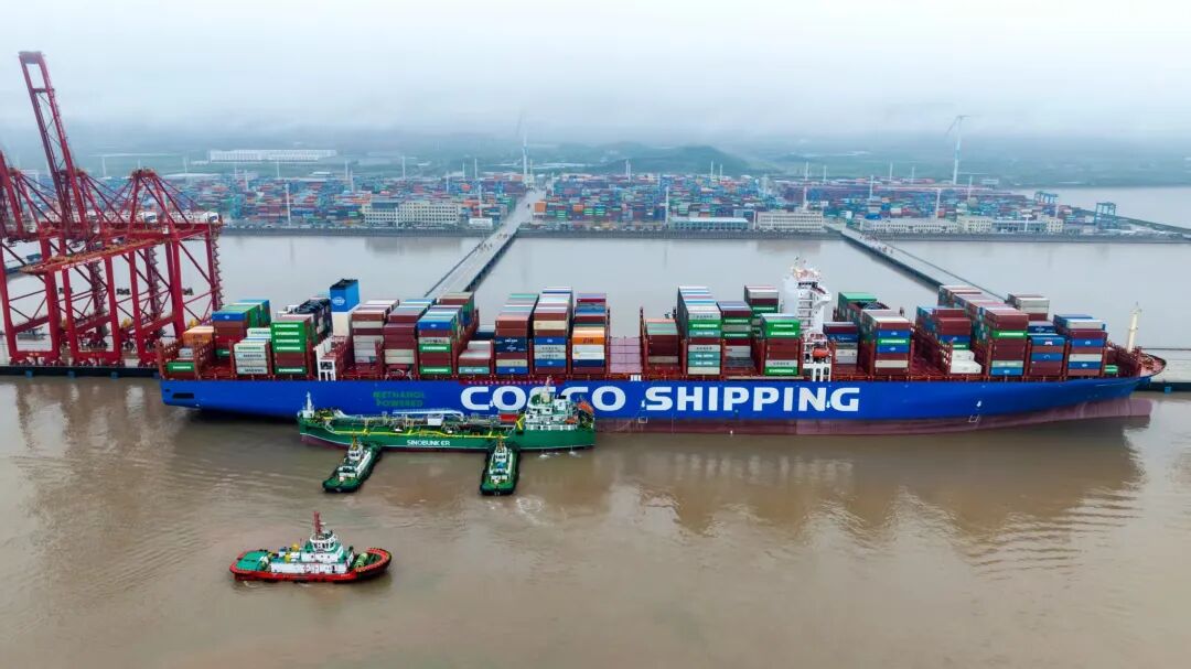 2026年4月22日中国船燃在宁波梅山岛国际集装箱码头成功为中远海运集团所属甲醇双燃料动力集装箱船“中远海运天秤座”轮加注国产绿色甲醇燃料503吨本次作业是中国船燃在宁波港首次采用船对船模式开展绿色甲醇加注也是继此前撬装加注后在该港口完成的第二次绿色甲醇加注标志着中国船燃在宁波港正式实现“撬装加注+船对船加注”双模式并行全面迈入绿色甲醇“多元加注、常态保供”新阶段充分展现了中国船燃在绿色航运燃料供