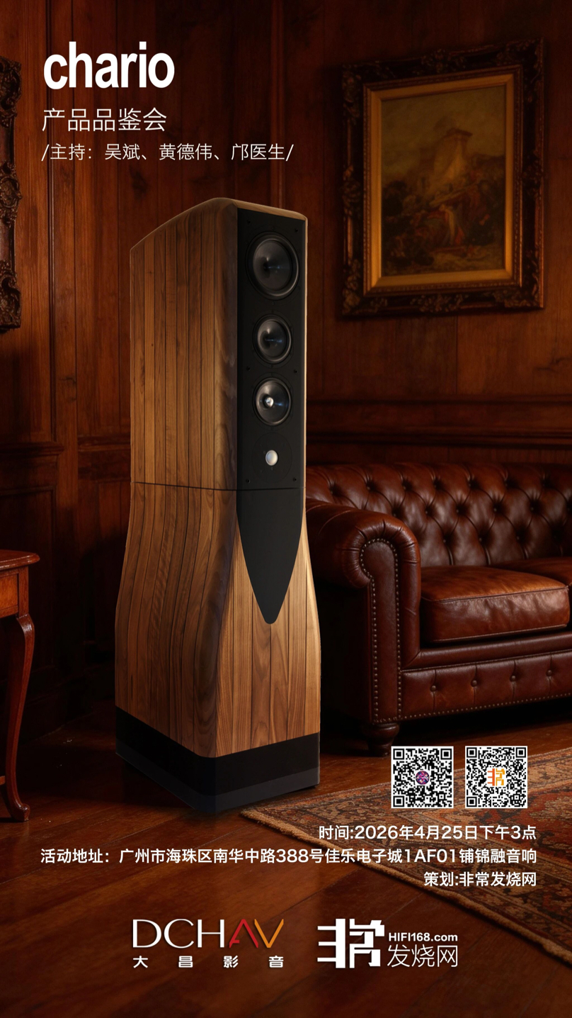 活动启幕:一场跨越山海的听觉之约当意大利匠心音响邂逅岭南发烧热忱,一场听觉与视觉的双重盛宴即将来袭!备受音响发烧友瞩目的Chario产品品鉴会,将于2026年4月25日下午3:00,在广州市海珠区南华中中路388号佳乐电子城1AF01铺「锦融音响」温情启幕。本次品鉴会由国内知名音响平台非常发烧网精心策划,携手大昌影音(DCHAV)强强联合,汇聚行业专家与资深发烧友,带你沉浸式感受高端音响的极致魅力