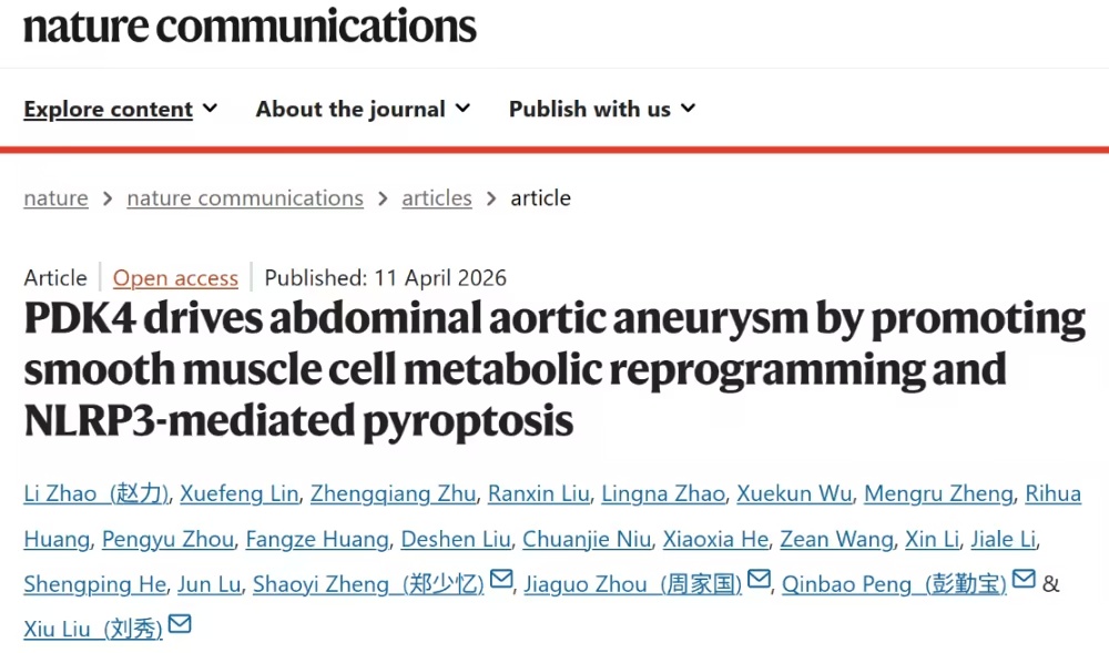 腹主动脉瘤(abdominal aortic aneurysm,AAA)是一种以腹主动脉局部进行性扩张为特征的高危血管疾病,临床上常缺乏早期症状,一旦破裂可引发灾难性内出血,严重威胁患者生命。尽管目前腔内修复术和开放手术等治疗方式不断进步,但AAA在早期识别、分子分型和靶向药物干预方面仍存在明显不足,相关发病机制也尚未完全阐明。 丙酮酸脱氢酶激酶4(pyruvate dehydrogenase k