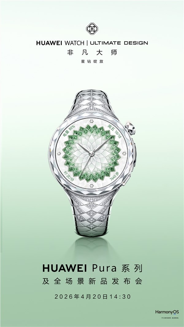 快科技4月17日消息,华为终端官方正式官宣WATCH ULTIMATE DESIGN非凡大师星钻绽放款,将于4月20日华为Pura系列及全场景新品发布会正式亮相。从外观看,新款将主要面向女性用户,是华为史上最奢华女表。此前该系列推出过两款产品,都是面向男性市场,分别是华为WATCH ULTIMATE DESIGN非凡大师、华为WATCH ULTIMATE DESIGN非凡大师紫金款,起步价超2万元