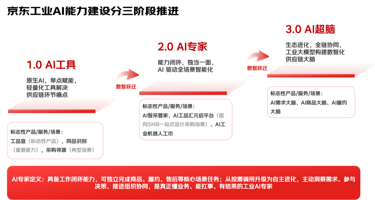 【亿邦原创】日前,京东工业公布了工业AI大模型JoyIndustrial的新进展——从1.0阶段的“AI工具”跃迁到2.0阶段的“AI专家”。AI专家具备工作闭环能力,能主动洞察需求、参与决策、推进组织协同,独立完成商品、履约、售后等核心场景任务。 京东工业于2025年发布了国内首个工业供应链垂直AI大模型JoyIndustrial,同时围绕供应链核心业务,推出系列应用智能体,将海量垂直“数据”和