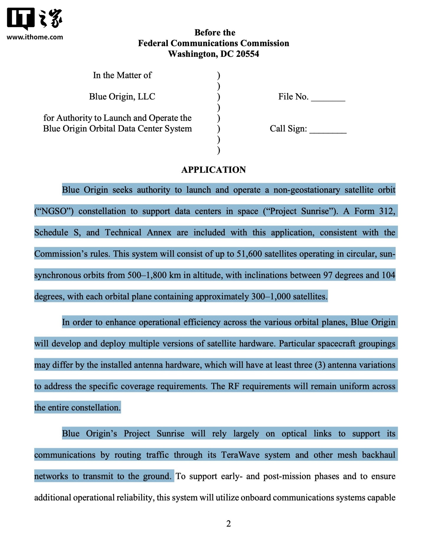 感谢IT之家网友 咩咩洋 的线索投递! IT之家 3 月 20 日消息,华尔街日报昨日(3 月 19 日)发布博文,报道称杰夫 · 贝索斯旗下的太空探索企业蓝色起源(Blue Origin)官宣进军太空 AI 基础设施领域。报道称蓝色起源已于 3 月 19 日向美国联邦通信委员会(FCC)提交了官方申请文件,寻求监管部门批准其庞大的卫星网络部署计划,计划在地球轨道上部署总计近 52000 颗具备高