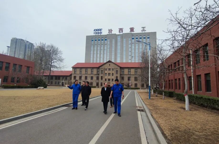 近日,公司党委书记、董事长杨文武,党委副书记、总经理颜光华一行到访中国船舶集团汾西重工有限责任公司(以下简称“汾西重工”),与汾西重工党委书记、董事长张卫华围绕项目合作展开深入沟通,并就加快推进相关工程建设达成了新的共识。在汾西重工副总经理李宏伟的陪同下,杨文武一行参观了企业展览馆、生产车间以及拟建项目建设场地。随后,双方召开座谈会,就项目推进节奏、建设实施模式以及长效合作机制等方面进行了务实交流