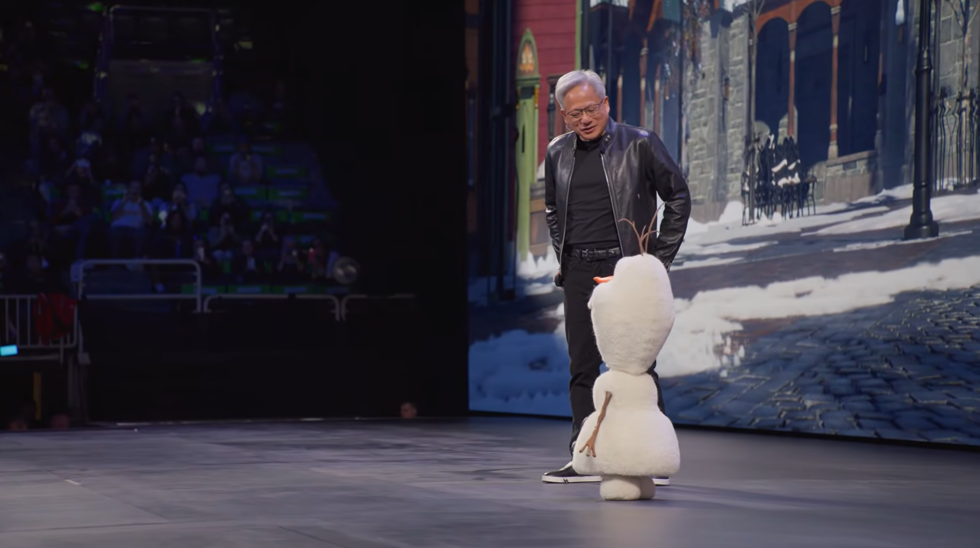 IP成机器人落地捷径 你知道雪宝吗? 这个来自迪士尼大热电影《冰雪奇缘》中的吉祥物角色,是女主角艾莎女王用冰雪魔法制造出来的雪人,憨憨又爱耍宝的他,以其可爱模样及乐观开朗的个性,深受大小朋友喜欢。 如果我告诉你,你真的有机会看到它走进现实呢? 在刚结束的GTC 2026大会上,英伟达CEO黄仁勋在主题演讲结尾,邀请了一位特别的“嘉宾”压轴登场。 没错,就是迪士尼的雪宝。 这个圆滚滚、憨态可掬的机器