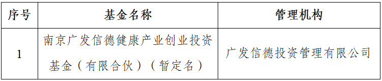 原标题:南京江北新区高质量发展基金拟出资为贯彻落实新区产业发展要求,发挥长期资本、耐心资本、战略资本的引领作用,以基金投资赋能支撑产业发展,着力打造发展新质生产力的重要阵地,江北新区出资设立南京江北新区高质量发展产业投资基金,并公开遴选市场化子基金管理机构。现对遴选结果进行公示,有关事项公告如下:南京江北新区高质量发展产业投资基金(有限合伙)拟参股1只市场化子基金,为南京广发信德健康产业创业投资基