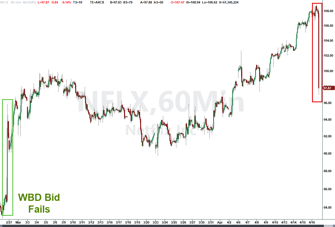 流媒体巨头奈飞(Netflix)公布喜忧参半的消息,引发市场剧烈反应。 美东时间16日周四,奈飞公布的今年第一季度营收和盈利增长比华尔街预期的强劲,但二季度的业绩指引逊于预期。奈飞同时宣布,公司联合创始人、董事长Reed Hastings将于6月退出董事会,带来管理层变动的不确定性。 以上消息传出后,周四收盘微涨不足0.1%的奈飞股价盘后跳水,盘后跌幅一度达到10%。 分析认为,奈飞股价大跌有三方