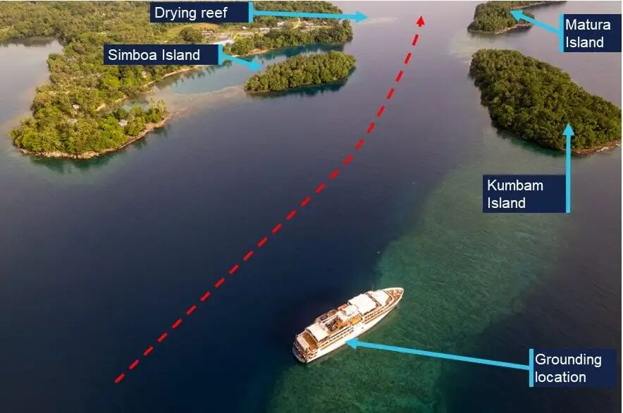 李老师微信 13697601072这起发生在巴布亚新几内亚附近海域的触礁事故,看似是一次普通的进港操作失误,实际上是驾驶员决策错误,ECDIS使用不当,操作判断失误的典型案例,对一线船员和船公司都有很强的警示意义。事故发生在2025年12月27日清晨,一艘93米长的小邮轮在距离港口不远处触礁。该水域航道狭窄,助航标志少,确实对导航和操纵有一定的影响。但是这小船才93米长,又是邮轮机动性还是比较好的