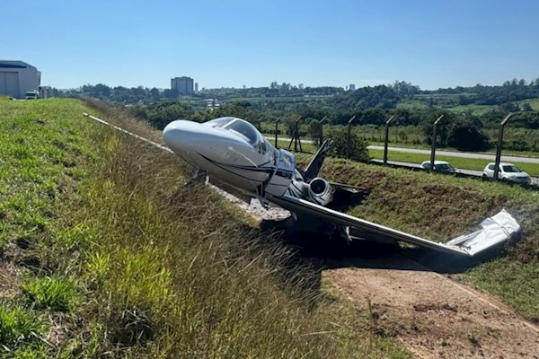 快科技3月20日消息,据报道,当地时间2026年3月15日上午,一架塞斯纳奖状550(Cessna Citation 550)公务机在巴西圣保罗州容迪亚伊的罗利姆·阿道夫·阿马罗州立机场着陆时发生意外,冲出跑道后坠入跑道尽头的深沟,飞机损毁严重。 据悉,涉事公务机注册号为PT-WIB,机龄达39年,当天执行从圣保罗州布拉干萨保利斯塔机场至容迪亚伊的短途飞行任务。 初步调查显示,该飞机在机场18号跑