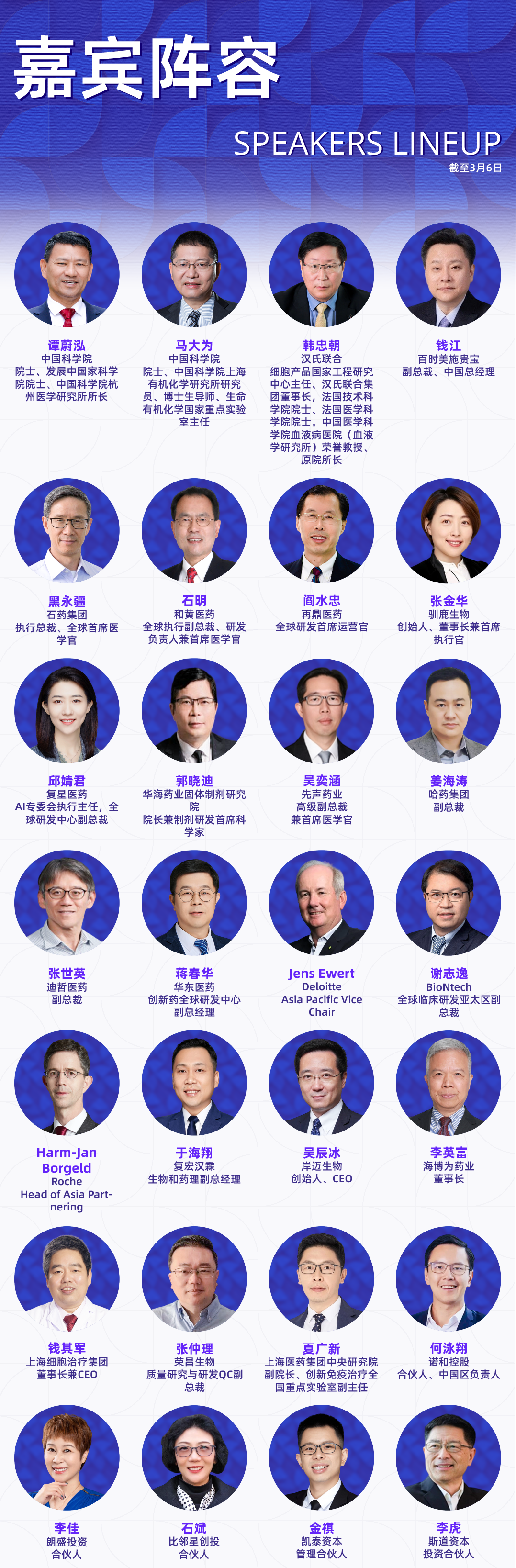 本届大会已确认 230+ 讲者加入,覆盖跨国药企、国内外药企、Biotech 高管、创始人、全球开发负责人及核心技术负责人、头部 CRO/CDMO 管理层及技术专家、科研院所研究学者、临床研究负责人以及投资决策人等产业实践者。他们代表行业领先水平,直接参与真实项目的立项评估、早期发现、临床前研究、临床推进、工艺放大与全球注册路径设计等环节。