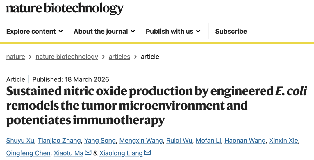 Nature子刊:北医三院开发抗癌大肠杆菌,持续产生一氧化氮,重塑肿瘤微环境并增强免疫治疗效果