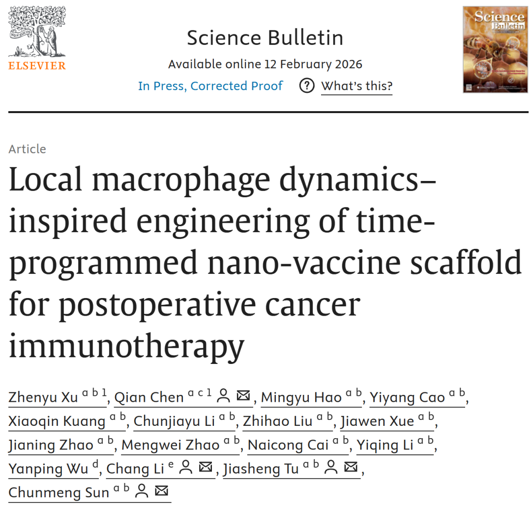 中国药科大学涂家生等团队Science Bulletin!局部巨噬细胞启发的新型纳米疫苗凝胶:术后免疫治疗新突破