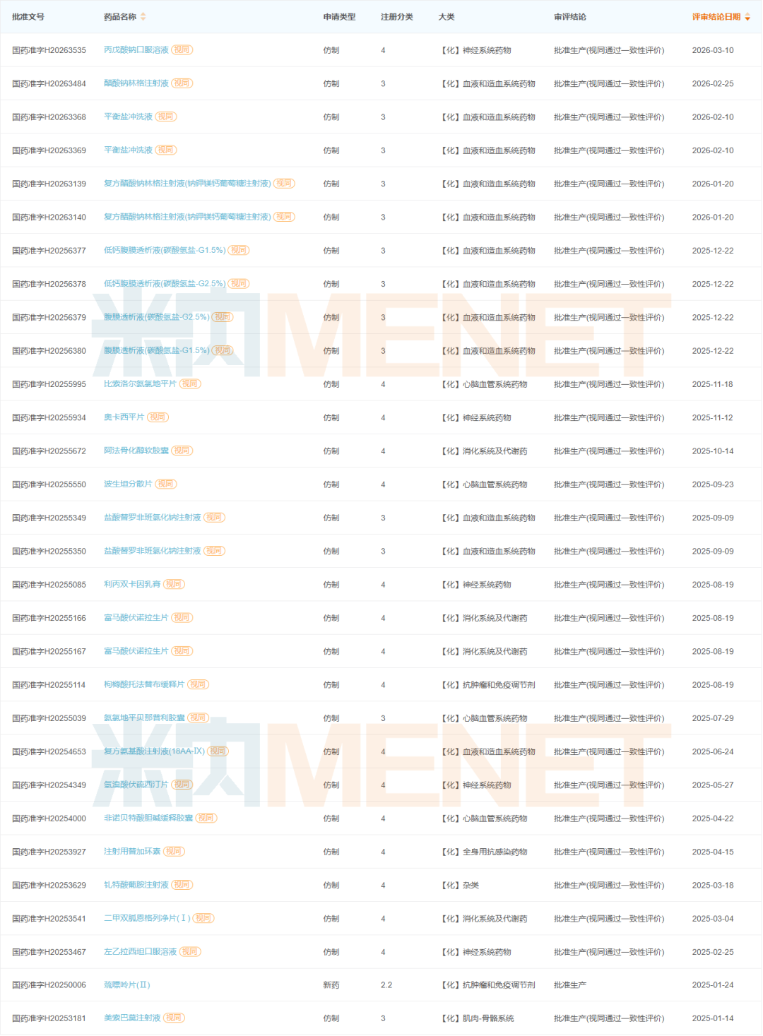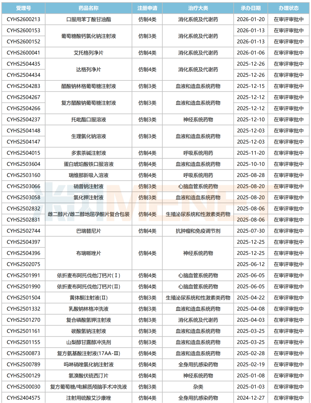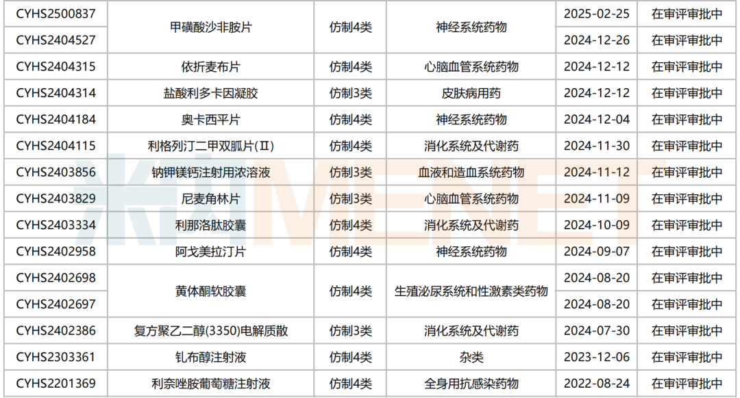 来源:米内网中国申报进度(MED)数据库