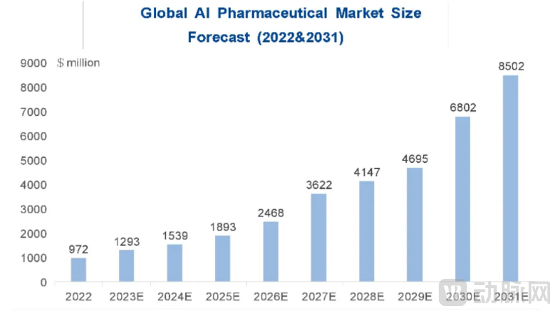图2.2022-2031年全球AI制药市场规模(数据来源:MedMarketInsights)
