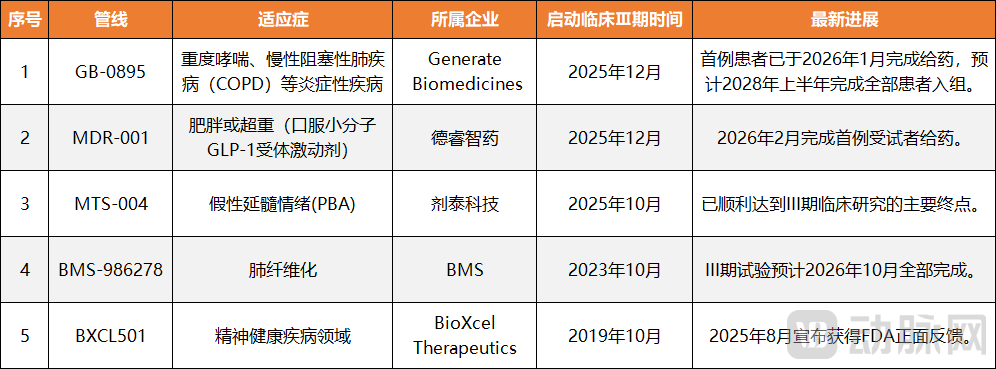 截至目前,国内已有上百家AI制药企业,除英矽智能、晶泰科技之外,还有一些优质代表,比如德睿智药,2025年12月,其由AI辅助设计研发的口服减重新药MDR-001正式启动Ⅲ期临床试验,成为中国首款进入该阶段的AI设计药物。另外还有剂泰科技,其AI驱动药物MTS-004在2025年10月达成Ⅲ期主要终点,有望填补国内假性延髓情绪失控治疗空白。