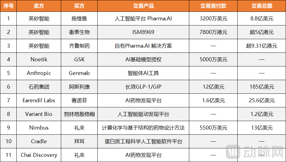 在2026年年初举行的“JPM”大会上,AI制药依然备受关注,并在会议期间完成一笔重磅合作——礼来与英伟达宣布共同投入超10亿美元建设联合实验室。另外在火爆的BD交易环节,据动脉网不完全统计,仅2026年开年的第一个月,全球AI制药相关授权合作就已经多达10起,交易总额超过200亿美元。