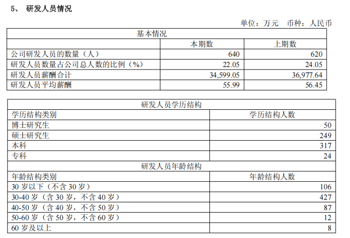 2025年公司研发费用支出13.42亿元,同比增长5.24%。财报显示,公司有研发人员640名,占总人数22%;2025年研发人员平均薪酬为56万元,同比变化不大。人才结构方面,硕博有近300人。