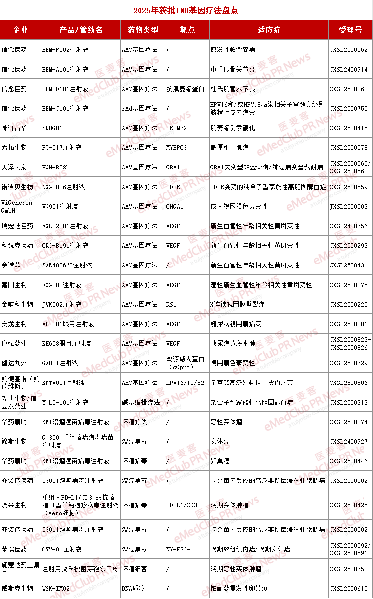 2025 年 30 余项 IND 获批,为中国基因治疗行业注入强劲动能。随着更多管线进入临床中后期,疗效数据将成为检验技术成色的最终标尺,行业的真正分化或许才刚刚开始。