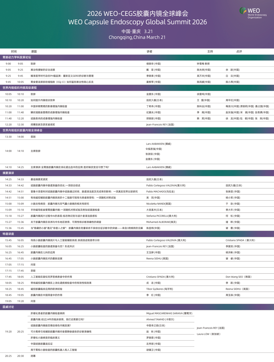 3月21日上午9:00,备受全球消化界瞩目的第七届世界内镜组织胶囊内镜全球高峰论坛(WEO-CEGS 2026)将在重庆正式拉开帷幕!