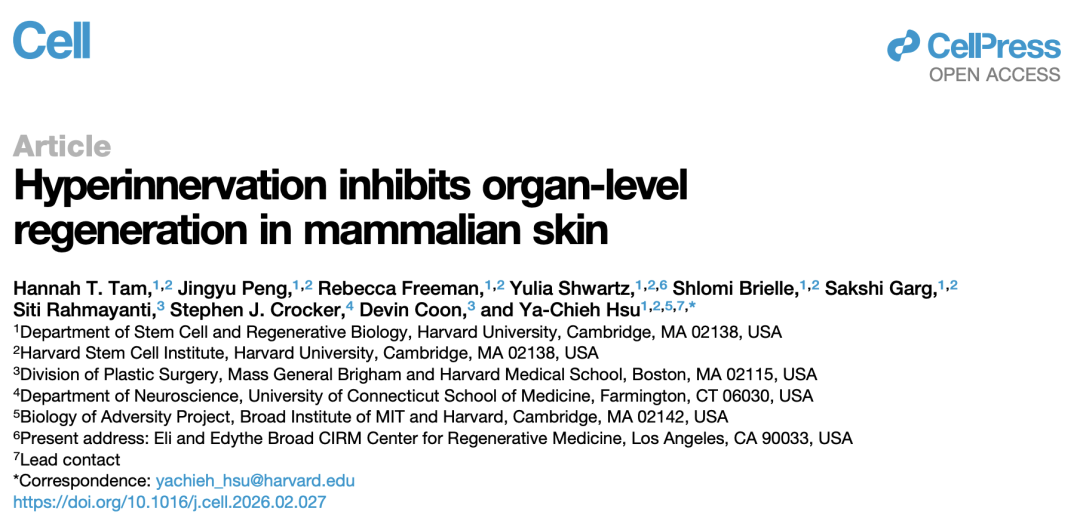 Cell:伤口为何总留疤?哈佛许雅捷团队揭示阻碍皮肤完美再生的关键——过度神经支配